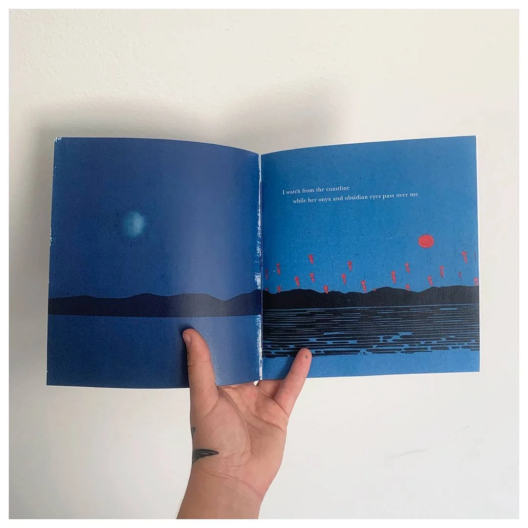 A picture book for the end times: a story about climate apocalypse and the spirit world. Printed in 2023. Illustrations by Noelle Richard, printing by Outlandish Press.